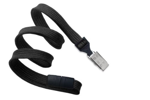 LANYARD STANDARD, BLACK, 3/8", FLAT WOVEN BREAK-AWAY LANYARD W/ BULLDOG CLIP